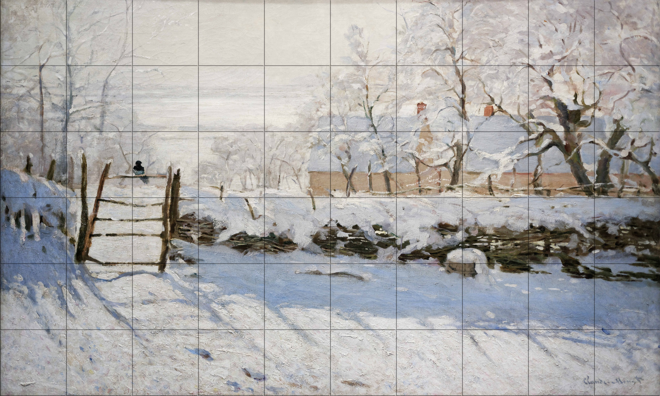 A obra destaca-se pelo uso subtil da luz e das sombras azuladas na neve, criando uma atmosfera silenciosa e delicada.